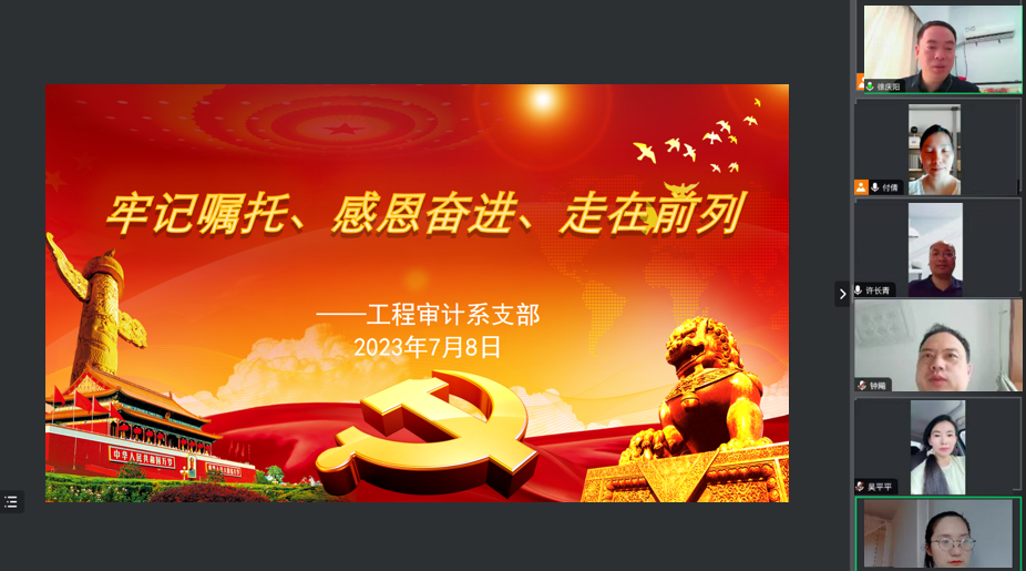 随后,各支部党员聚焦解决民生领域突出问题,围绕专业建设、学科竞赛、校企合作与社会服务等方面进行深入探讨,并就学院高质量发展相关问题提出了各自的意见和建议。工程审计学院全体党员将坚定不移落实习近平总书记重要讲话重要指示和党中央以及校党委决策部署,牢记嘱托,感恩奋进,砥砺前行,同心筑梦,谱写全面建成审计特色鲜明的世界一流大学崭新篇章!