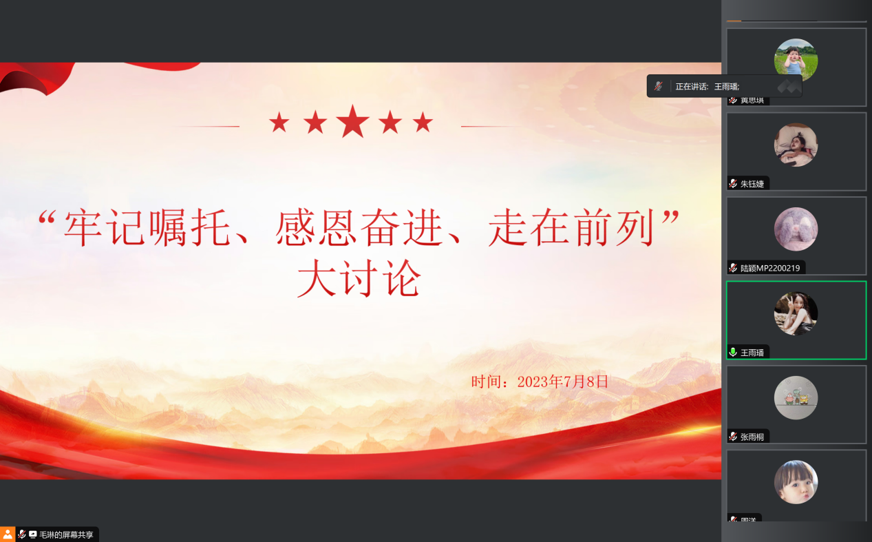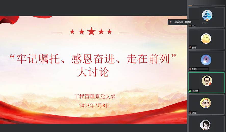 为深入学习贯彻习近平新时代中国特色社会主义思想,进一步落实“学思想、强党性、重实践、建新功”总要求,7月5日-8日,工程审计学院各支部师生围绕学习习近平总书记回信重要精神,采取线上与线下相结合的方式开展“牢记嘱托,感恩奋进,走在前列”大讨论。各支部全体党员参加交流研讨。