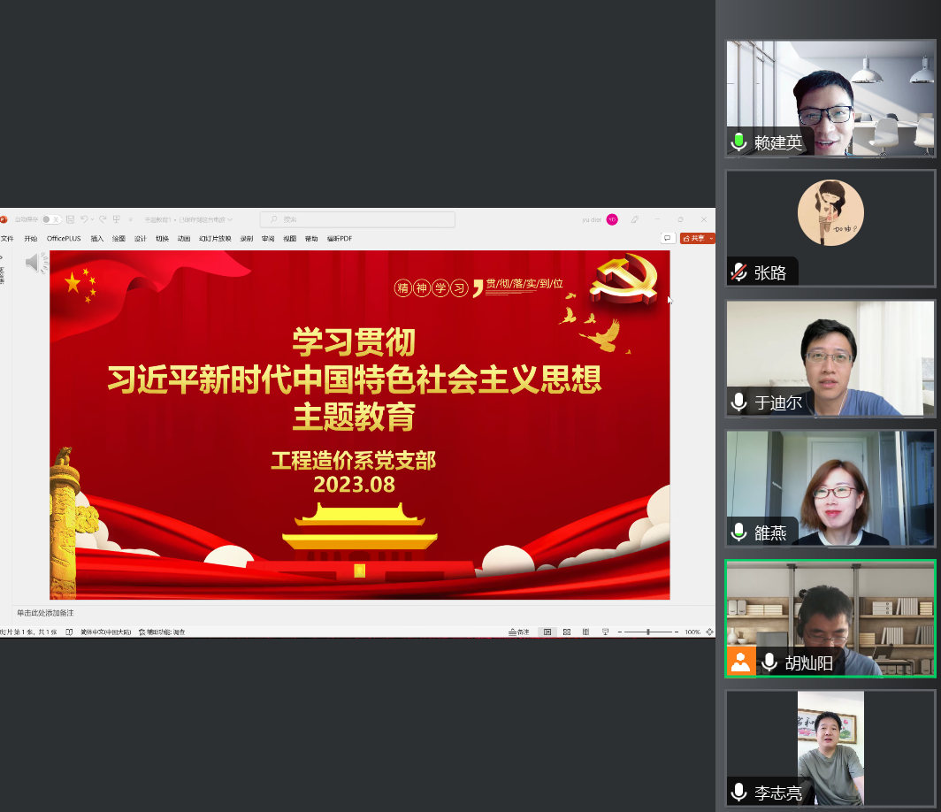 8月5日,工程审计学院工程造价系支部在线上开展学习贯彻习近平新时代中国特色社会主义思想主题教育集中学习。会议由党支部书记胡灿阳同志主持,由支部党员教师于迪尔同志领学,支部全体党员参加。
