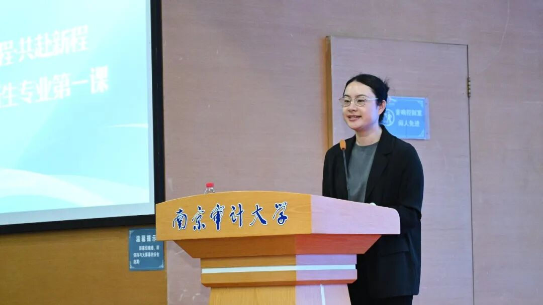 时现教授为同学们上专业第一课,她为新生描绘了一幅充满机遇的成长蓝图,并回顾了工程审计学院专业的建设历程,从学科的萌芽、国家对工程审计领域的迫切需求,到个人在成长道路上所承担的使命,层层展开,令人倍感振奋。她指出,从历史悠久、底蕴深厚的工程审计专业,到与工程管理紧密关联的交叉学科知识体系,南审为学生提供了独特的土壤。她特别强调,学校浓厚的审计文化如同阳光雨露,能系统培养学生严谨的审计思维、逻辑与职业道德,工程审计学院的学生需要具备跨学科视野,既要掌握工程技术知识,也要理解审计逻辑,同时还需拥抱现代信息技术。这将成为同学们未来最核心的竞争力。