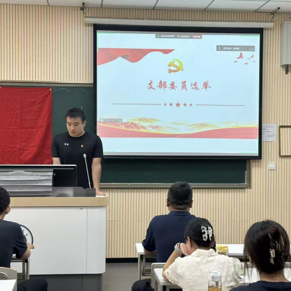 在选举环节,张震武、陈晋唯老师分别就本科生第一、第二党支部的选举工作要求进行说明,详细解读选举规则、投票流程、差额选举办法及纪律要求,确保全体党员明确选举规范。随后,各支部候选人员依次上台进行竞选陈述。
