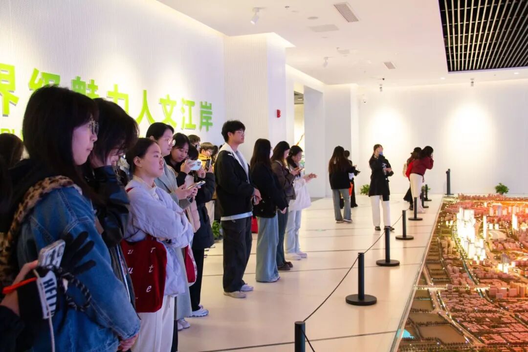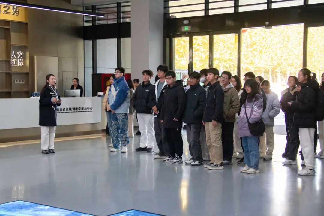 上午9时30分,参与活动的学生党员代表准时抵达位于建邺区江堤路的南京滨江规划建设展示中心。在讲解员的引导下,大家共同参观了“活力滨江·生态建邺”青年学习社线路。通过图文展板、沙盘模型、多媒体影像等多种形式,党员们深入了解了滨江区域从工业岸线向生态岸线、生活岸线、景观岸线转型的历程,切身感受建邺区在推动高质量发展与生态文明建设协同并进中的生动实践。大家边走边看、边听边思,对“绿水青山就是金山银山”的发展理念有了更加直观和深刻的理解。