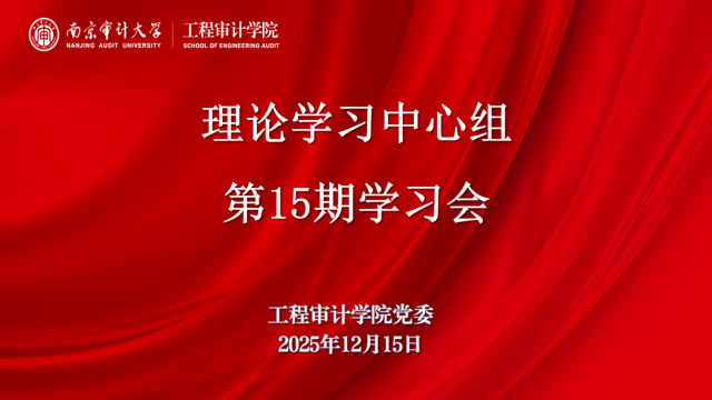 12月15日下午,工程审计学院党委理论学习中心组在致明楼709会议室召开2025年第15期学习会(扩大)。学院领导、党委委员,跟岗锻炼青年教师参加学习,学院党委书记刘玉主持会议。