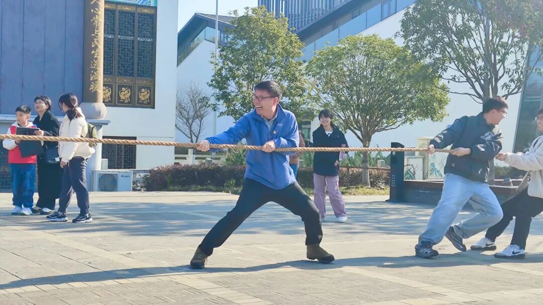 随后开展的拔河比赛将活动氛围推向高潮。工会成员迅速分组、摩拳擦掌,展现出教职工队伍的活力与激情。随着哨声响起,双方队员紧握绳索、齐心协力,在力量的较量中互相鼓劲,在协作中切磋技巧。场外啦啦队加油声、呐喊声此起彼伏,现场掌声与喝彩不断。这一轻量化趣味竞技环节,既保证了全员参与的普及性,又增添了活动的互动乐趣,有效拉近了同事间的距离,增进了彼此的了解与默契。