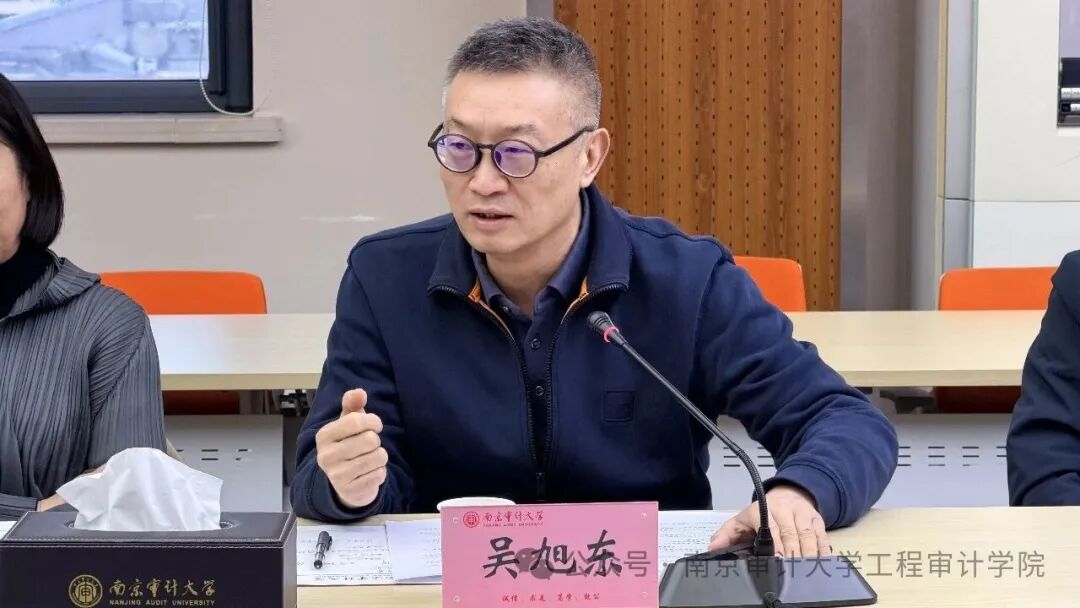 1987级校友吴旭东建议完善校企互动机制,推动产业教授更深融入教学与科研活动,并分享南水北调集团在数字化审计系统建设中的实践经验。