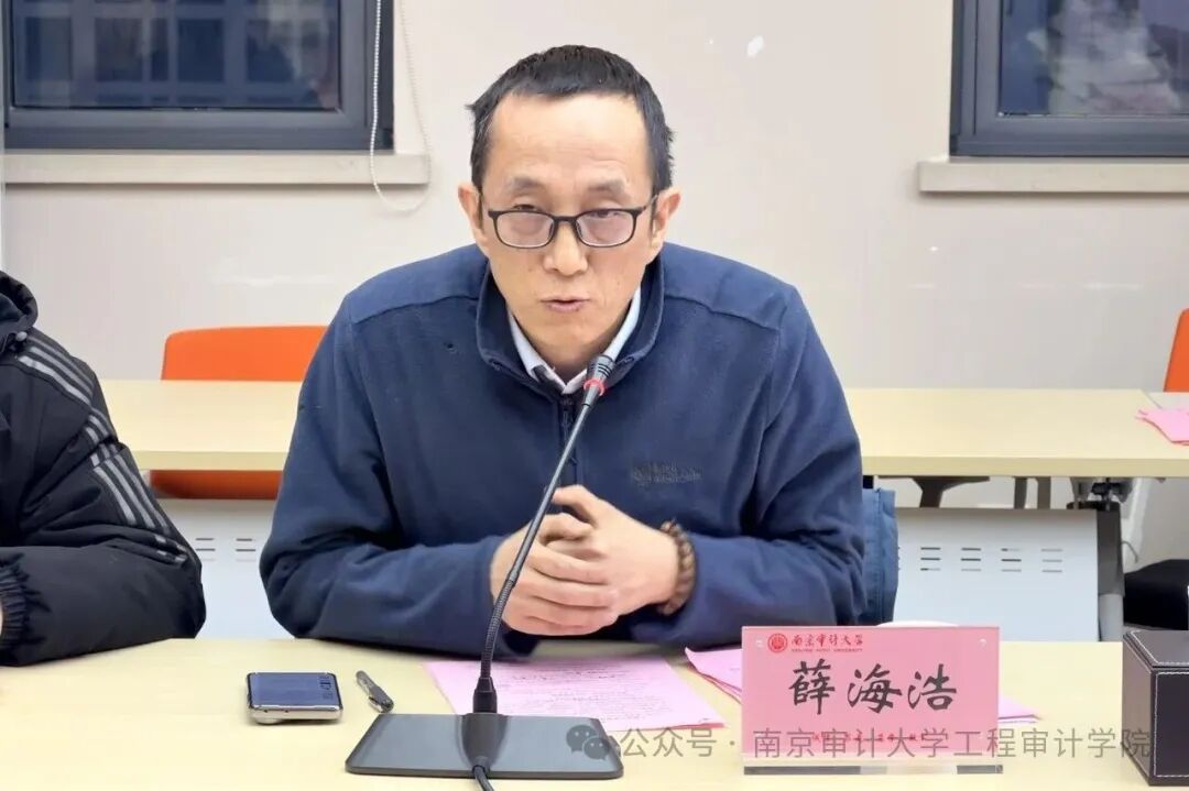 工程审计学院校友联谊会秘书长薛海浩汇报了联谊会成立八个月以来的工作进展。通过协办“启航工程”、组织校友导师团、协办工程审计年会、推动产学研项目落地等,初步构建起情感凝聚与事业协同并重的校友生态。多项校企合作课题获批立项,彰显了校友与学院“双向赋能”的积极成效。